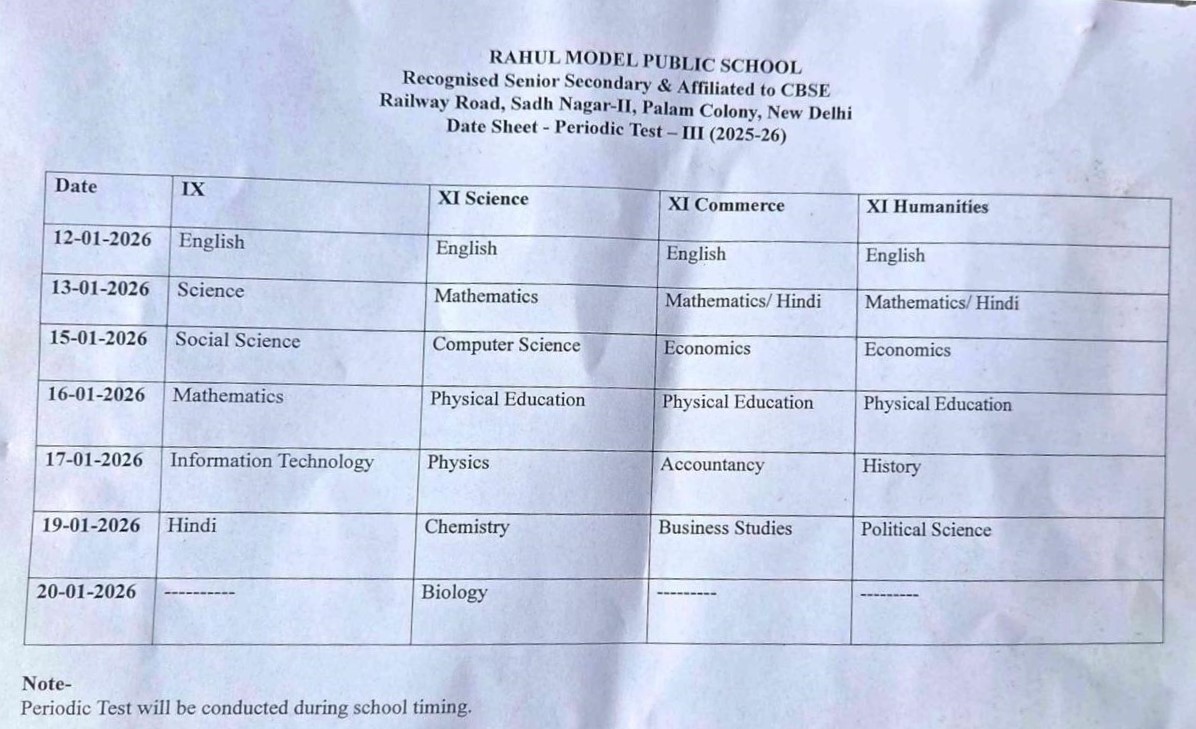 Performance Testadsense2026-01-19T13:41:22+00:00 Date Sheet - Class 10th - Mock Practical Examination (2025-26)Periodic TestDate Sheet – Periodic Test – III – Class PS (2025-26) Date Sheet – Periodic Test – III – Class PN (2025-26) Date Sheet – Periodic Test – III – Class PP (2025-26) Date Sheet – Periodic Test – III – Class 1st – 5th (2025-26) Date Sheet – Periodic Test – III – Class 1st to 8th (2025-26) Date Sheet – Periodic Test – III – Class 9th & 11th (2025-26) Performance TestDate Sheet – Mock Practical Examination – II (2025-26) Date Sheet Pre Board Examination IIDate Sheet Pre Board Examination IDatesheet and Syllabus for Class PS PT 2Datesheet and Syllabus for Class PP PT 2Datesheet and Syllabus for Class PN PT 2Datesheet for Class 1 to 8 PT 2DATE SHEET – MID TERM EXAMINATION – Clss 9th, 10th, 11th & 12th – 2025-26DATE SHEET OF MOCK PRACTICALS EXAMINATION – Class 12th 2025-26Date Sheet For Practical (Mid term) – 2025-26 – Class 9th, 10th & 11thDATESHEET & SYLLABUS OF MID – TERM EXAM – PNDATESHEET & SYLLABUS OF MID – TERM EXAM – PPDATESHEET & SYLLABUS OF MID – TERM EXAM – PSDate Sheet – Periodic Test – II (2025-26)DATE SHEET – MID TERM EXAMINATION 2025-26Date Sheet of ORAL TEST 2025-26Date Sheet – Periodic Test – II (2025-26)DATESHEET & SYLLABUS OF PERIODIC TEST – 1 – PSDATESHEET & SYLLABUS OF PERIODIC TEST – 1 – PNDATESHEET & SYLLABUS OF PERIODIC TEST – 1 – PPDate Sheet – Periodic Test-I (Class 1 to 8)Date Sheet – Periodic Test-I (Clsss 9 to 12)
